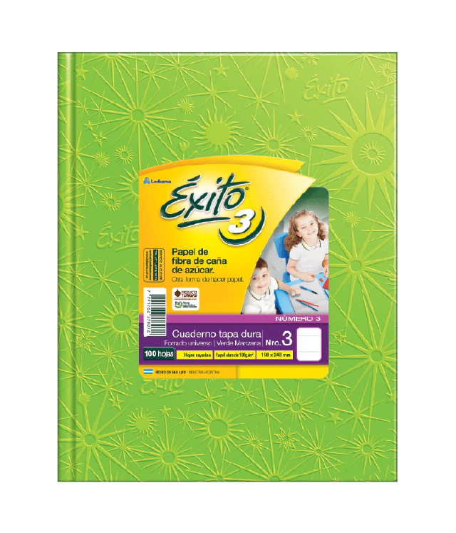 CUADERNO TAPA DURA E3 (19x24) ÉXITO FORRADO VERDE MANZANA 100 HOJAS RAYA, 100 G/M2 - C: 100957